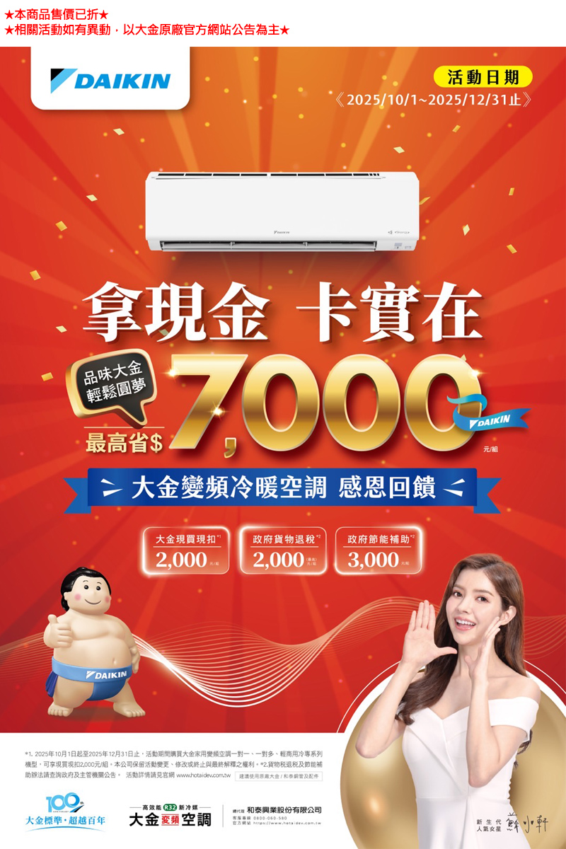 買大金,現買買折 卡實在 指定空調最高折2,000